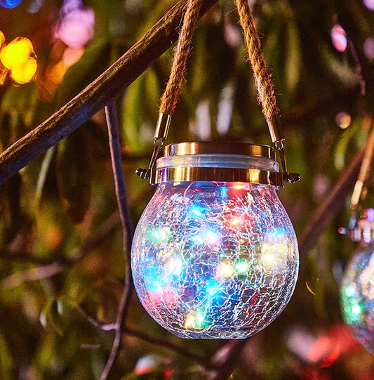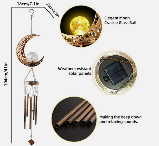 Solar LED Light Lamp Moon Wind Chimes Outdoor Home Solar Crackle Glass Ball Lamp